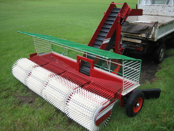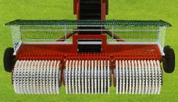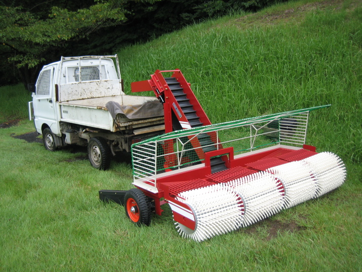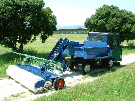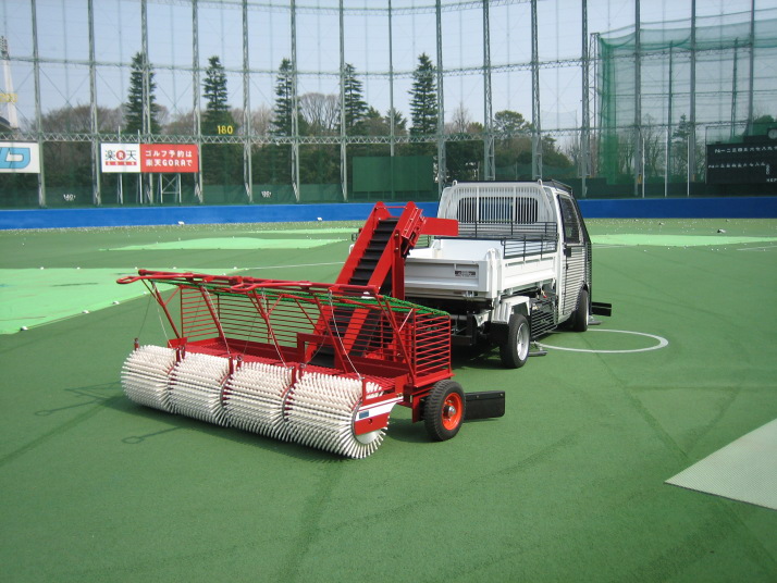集球ドラム4連式と3連式があり、ひとつのドラム幅が約 500mmと小幅なため場内の起伏に細かく応答して拾い残しを防ぎます。また、ドラム間には上下可動式ボールガイドを装備しておりますので隙間を抜けるボールを見逃しません。 -