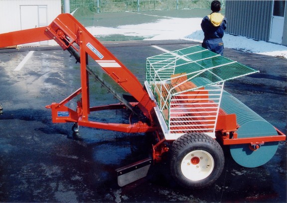 車輪の回転により上昇するコンベヤベルトでボールを荷台に自動投入しますのでボールケースを持ち上げる必要がありません。 -