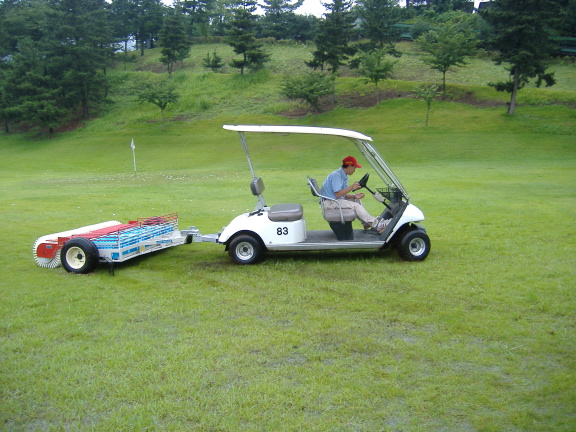 低圧幅広ターフタイヤを使用してボール積載時に於ける芝への影響を防いでいます。 -