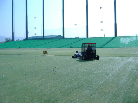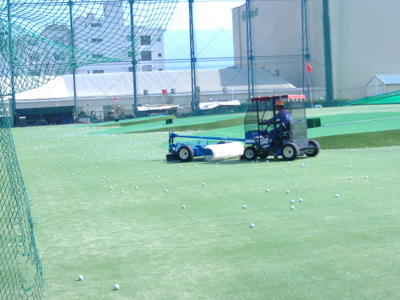 HG2500F作業車の前で拾うボールを踏まない前拾い式!!