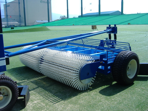 集球機先端にトレーラーボールを設置して作業車とトレーラーヒッチでつながりますので、作業時には滑らかに動きながら連結・切り離しは簡単に行えます。 -